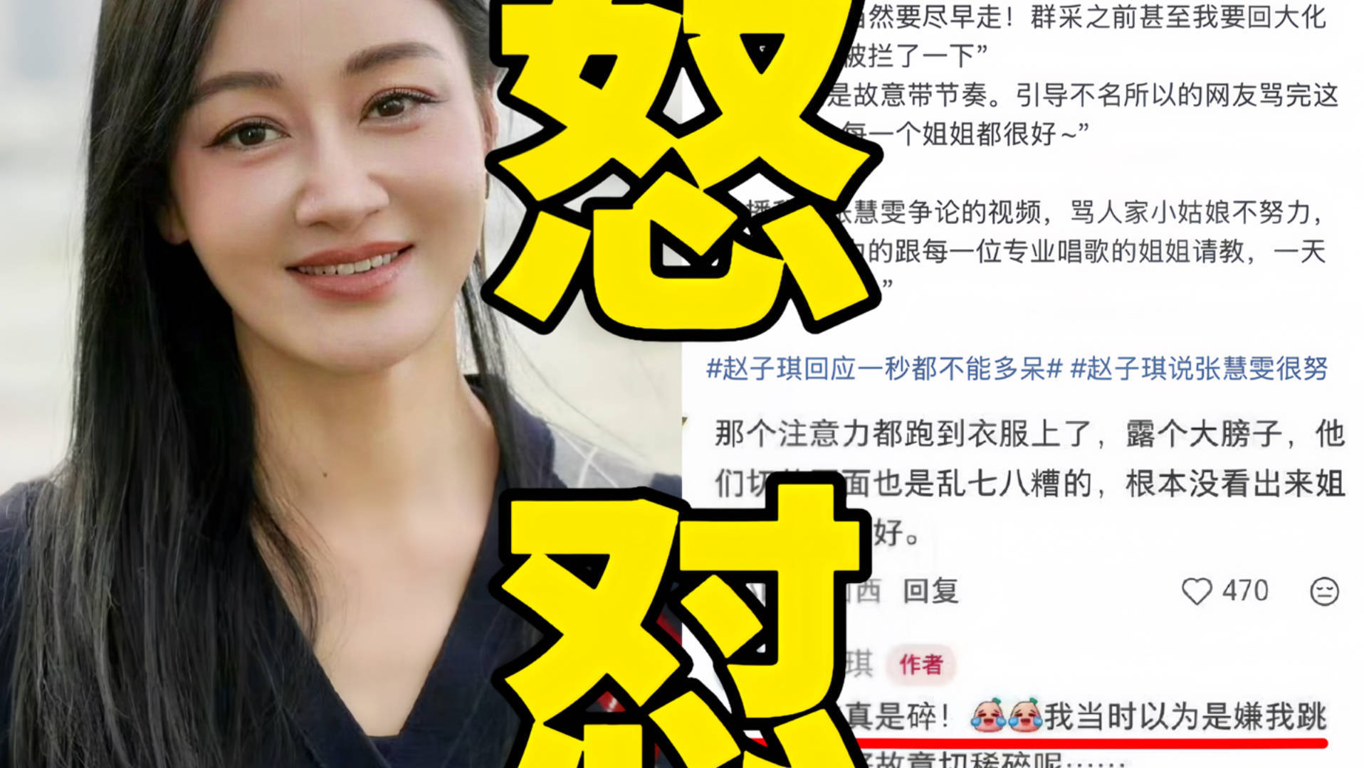 事情的导火索,是节目里那段“赵子琪怒怼张慧雯”的名场面。镜头里,她眉头紧锁指着队友,语气尖锐仿佛在吵架,弹幕瞬间刷满“姐姐们撕起来了”。可赵子琪在微博里甩出实锤:这根本是剪辑的“魔术”!两人只是训练理念不同——她主张高强度突击训练,张慧雯觉得该循序渐进。争执不过三分钟,后续就一起加练到凌晨,这些画面全被节目组“一剪没”。更离谱的是淘汰夜,明明团队总分第一,却因队长1v1失利触发奇葩规则,她以3票之差出局。离场时想回候场拿包被拒,还被工作人员强迫对着镜头拍“凄惨告别”,气得她当场摔门而去。